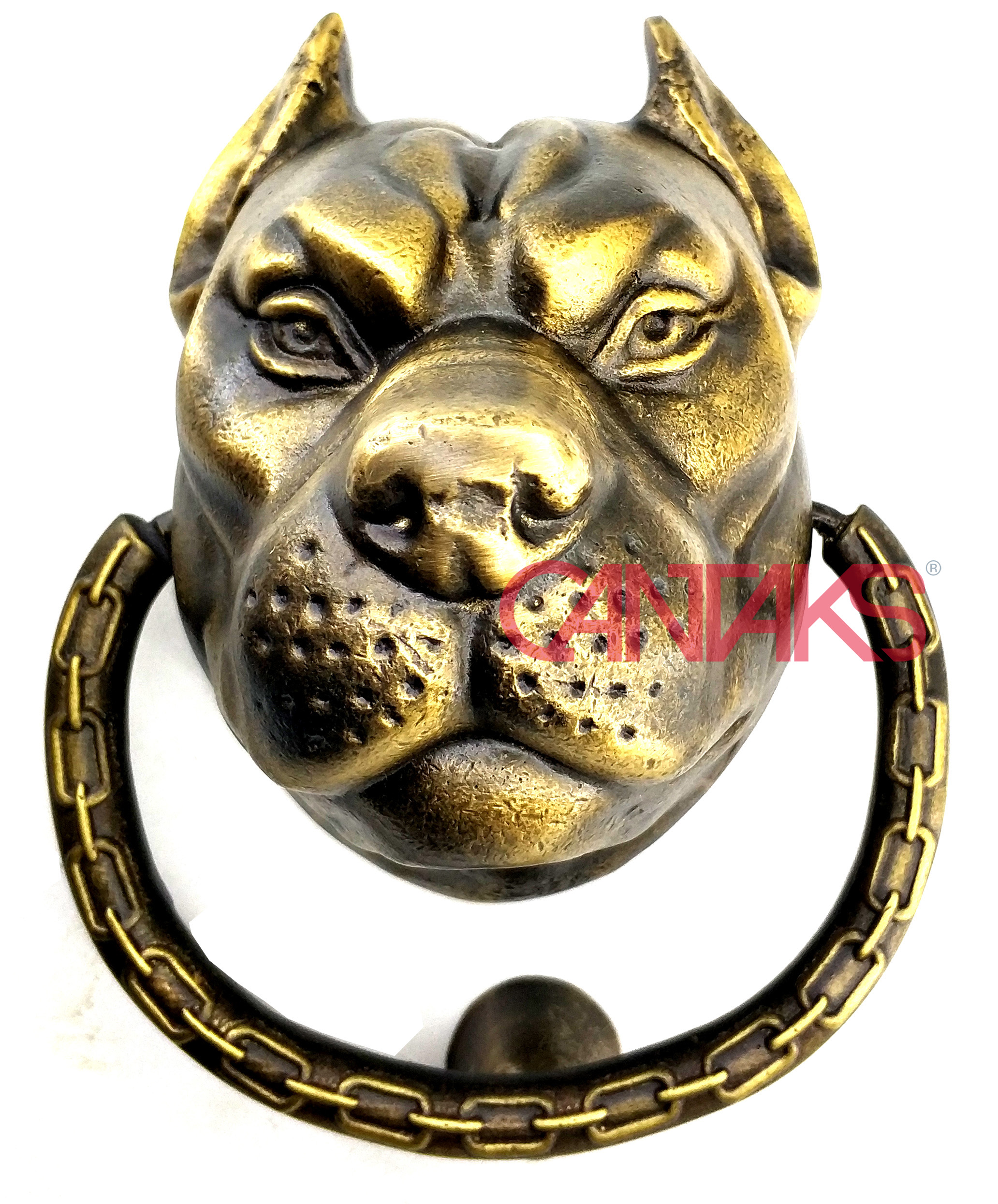Cantaks'ın özel el işçiliğiyle üretilen Pitbull Taktak, sadık ve kararlı duruşu simgeleyen figürüyle eski zamanların ruhunu ve antik zarafetini kapınıza taşıyor. Bu ürün, sadece bir kapı tokmağı değil, aynı zamanda vintage ve retro bir sanat eseridir. Pirincin doğal dayanıklılığı ve estetik eskitme dokusuyla, mekanınıza otantik ve rustik bir hava katar. Bu karakterli parça, girişinizi sıradanlıktan uzaklaştırır ve misafirlerinize çarpıcı bir karşılama sunar.